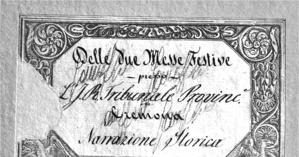 Il titolo del fascicolo fa riferimento a: 'Delle due Messe Festive della Magistratura Giudiziaria in Cremona e dei suoi carcerati'.