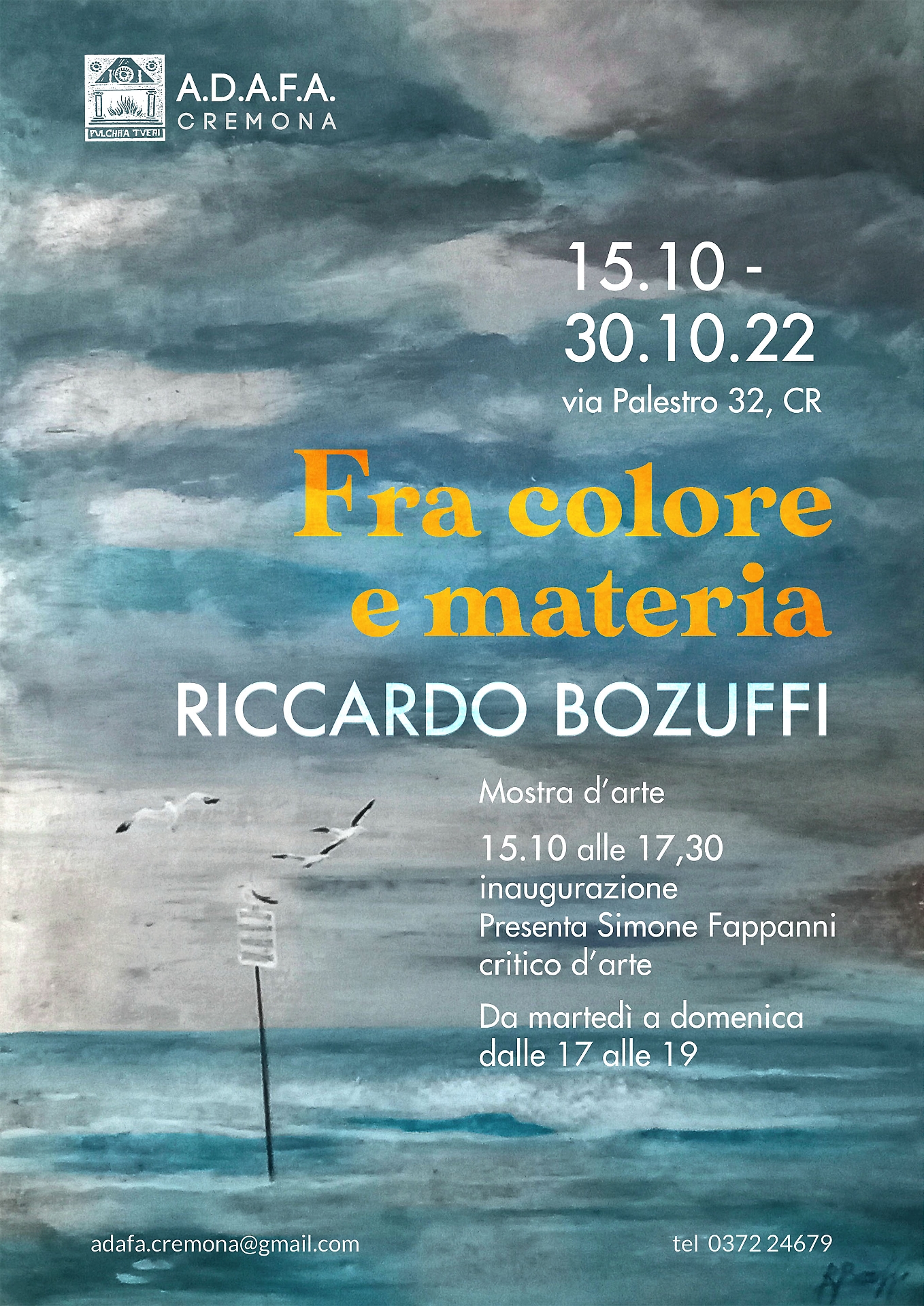 «Ci sono due anime creative che accompagna la mostra – spiega Fappanni nel volume monografico che accompagna la rassegna - che sostengono la fervida ispirazione di Bozuffi: la predilezione verso tinte ad acquerello e la vocazione sperimentalista che lo ha condotto verso l’ideazione della tecnica denominata “Silver & Gold”, dal momento che le opere di questo ciclo sono realizzate su foglia d’argento e d’oro. Artista veramente eclettico, ama spaziare, con sorprendente continuità stilistica, dal realismo alla sperimentazione rimanendo sempre e comunque fedele a se stesso, a quella raffinatezza di fondo che s’innerva profondamente in ogni sua opera trasmettendo un senso di serena ed empatica contemplazione. Con l’acquerello dipinge intensi e coinvolgenti paesaggi, in cui spesso i colori della campagna cremonese, ora ammantata dalle luci aurorali dell’autunno, ora dai colori lividi dell’inverno, in altri casi battute dalla forza del sole estivo o da delicate tonalità primaverili, si accordano perfettamente con cascine e fienili che riportano a un passato rurale. Nei quadri “Silver&Gold”, al centro della rassegna, seppure permane l’interesse per il paesaggio, secondo ampie inquadrature che seguono varchi prospettici che conducono lo sguardo dal primo piano fino all’orizzonte, prevalgono le figure. Si osservano infatti sia di personaggi molto noti, sia di persone qualunque, di amici e familiari. Fra le opere più conosciute spiccano infatti gli autoritratti, il ritratto della moglie e dei nipoti, con una fedeltà all’originale davvero sorprendente. Non mancano angoli di Cremona, specie degli scorci più nascosti della città di Stradivari, ma anche vedute di altri centri urbani, come la serie dei borghi di mare dove spesso si ergono i trabocchi frustati dalle onde. Anzi, le marine sono spesso caratterizzate da un’atmosfera raccolta, in altri casi persino rarefatta, quasi a sottendere un aspetto che fonde meditazione e osservazione pura del panorama, ripreso con pigmenti che si spandono sulla carta al ritmo di velature estremamente armoniche. Si tratta dunque di composizioni di grande suggestione e dalla forte impronta lirica».