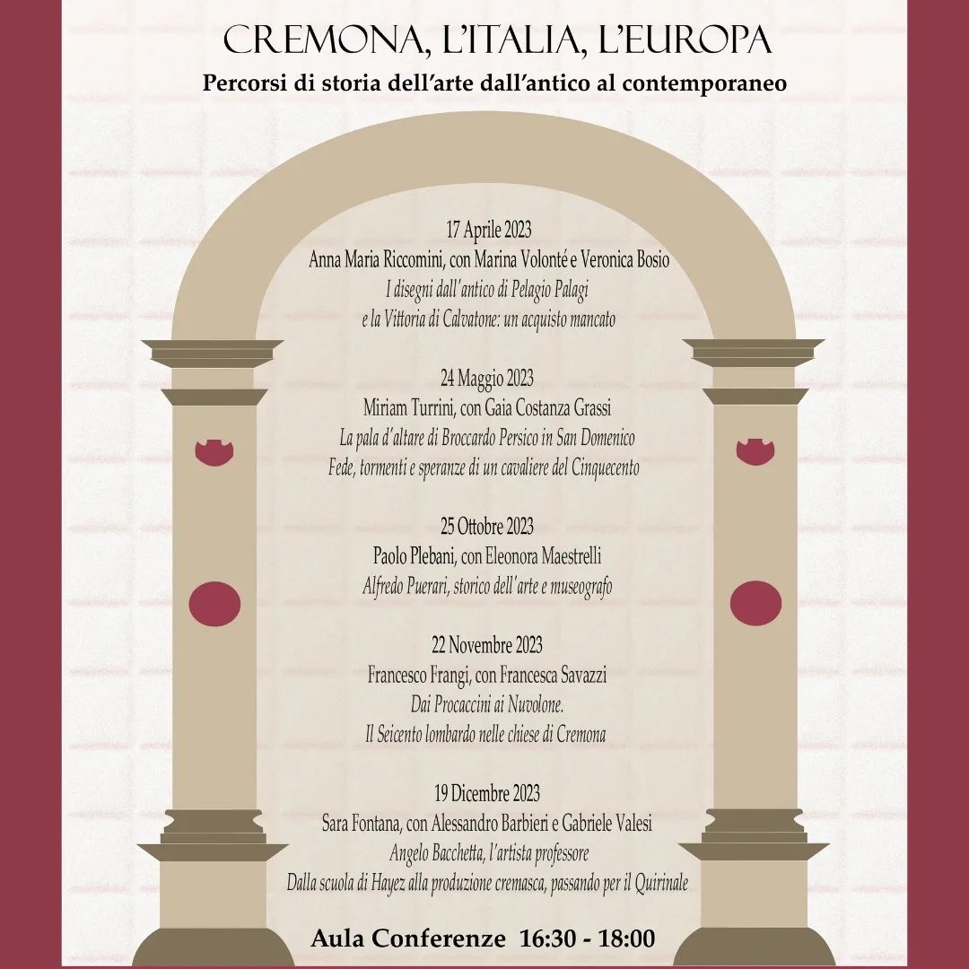Lunedì 17 aprile alle 16.30 a Cremona, Palazzo Raimondi (aula conferenze), primo incontro del nuovo ciclo di conferenze sulla storia dell'arte dal titolo "Cremona, l’Italia, l’Europa".