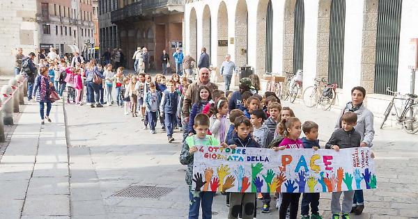 Le immagini dei bambini in marcia per la pace