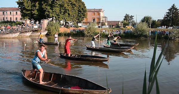 COMMESSAGGIO — Grazie alla duplice vittoria della ‘Regata cun i batèi’ sia nella sfida femminile che in quella maschile, nel tardo pomeriggio di domenica la contrada ‘Argini’ ha vinto il Palio delle contrade 2013 — che si potrebbe ribattezzare il ‘Palio di Caronte’ a causa dell’infernale anticiclone africano —, organizzato nell’ambito della fiera di Commessaggio, a cura della Pro Loco e del Comune.