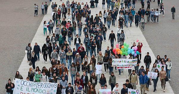 La marcia della pace ha raggiunto, con un'ampia partecipazione di studenti, piazza Garibaldi. I ragazzi hanno portato anche alcuni striscioni. Una delegazione di studenti e docenti, guidata dalla dirigente scolatica e dai docenti Stefano Prandini e Cinzia Dall'Asta, si è recata in sala consiliare mentre era in corso l'incontro con Ambrosoli.