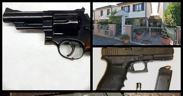 Le armi: una classica P38 a tamburo, una calibro 45 automatica (un’arma di potenza devastante) e una Glock calibro 21 automatica: tutte regolarmente denunciate e utilizzate dal figlio di Risi per la pratica sportiva al poligono.