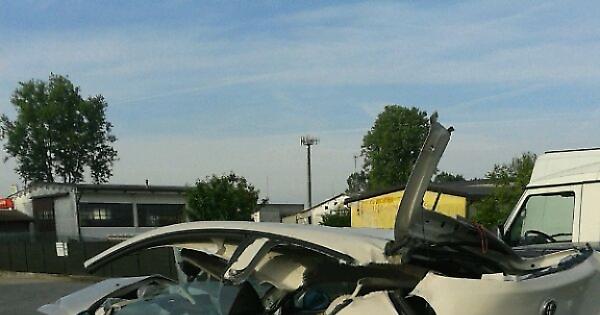 Le immagini dell'auto tagliata a metà dopo lo schianto
