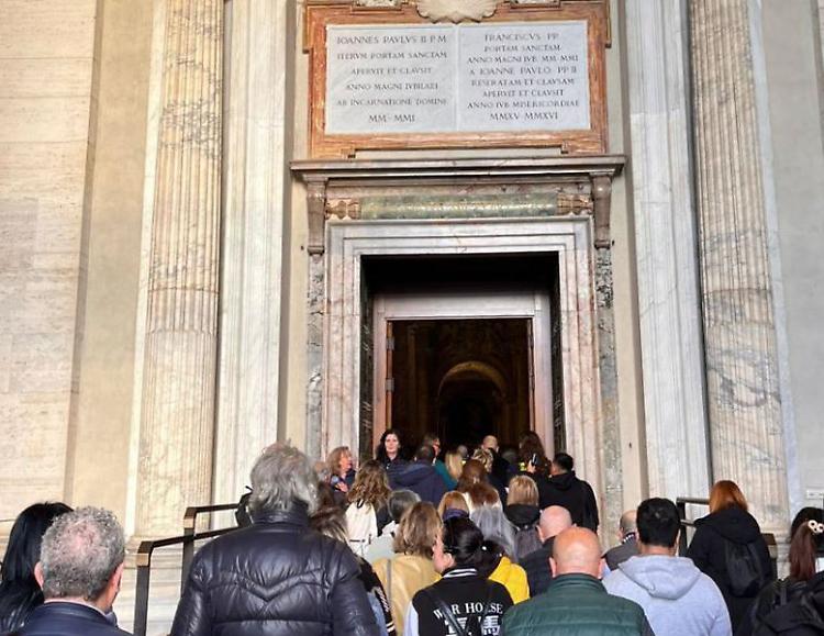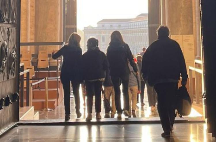 Impossibile naturalmente sostare in preghiera nei pressi del feretro del Pontefice, perché il passaggio deve essere costante. Solo pochi istanti, dunque, per poterlo vedere per l’ultima volta, ma di forte emozione e intensità spirituale, favoriti anche dal clima di silenzio e preghiera circostante. Un momento che rimarrà impresso nella memoria, come l’ultima immagine di Francesco, oggi così diverso da come si era abituati a vederlo.