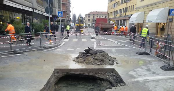 Voragine e perdita d'acqua in porta Ombriano