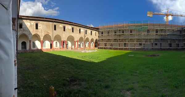 CREMONA (26 aprile 2019) - Il Campus di Santa Monica sta diventando realtà. Visita in cantiere con il cavalier Giovanni Arvedi, l’arcivescovo di Milano monsignor Mario Delpini, il vescovo di Cremona monsignor Antonio Napolioni, il presidente della Provincia Davide Viola e il sindaco Gianluca Galimberti.