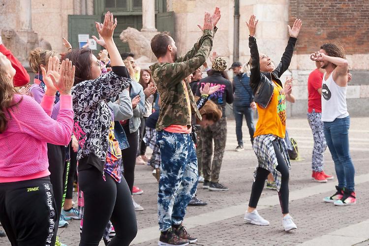 FOTO Zumba, flash mob in piazza del Comune con Hermann Melo