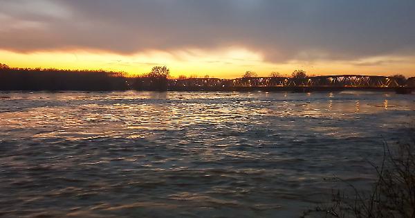 FOTO Il colmo di piena a Cremona con il Po al tramonto