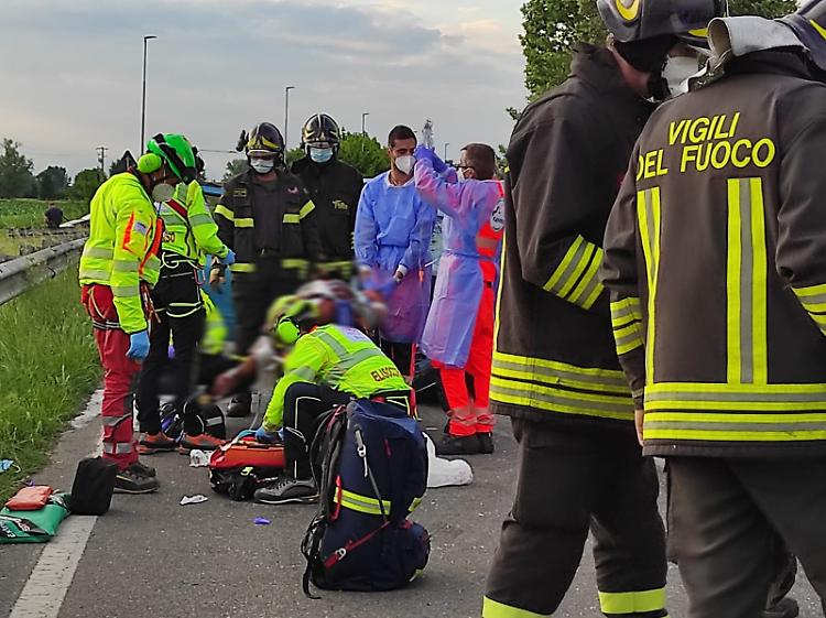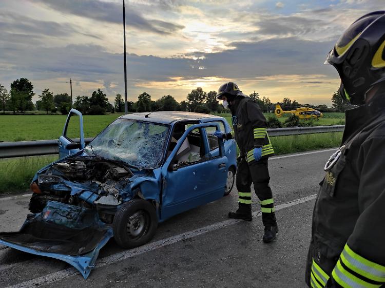 CREMA - Una carambola spaventosa con tre mezzi coinvolti e quattro feriti, uno dei quali è stato trasportato in ospedale in eliambulanza. È successo lungo via Bergamo, pochi minuti prima delle 19.30: lo schianto è avvenuto in pieno rettilineo, all'altezza del cimitero di Santa Maria. La dinamica è ancora tutta da verificare, ma in base ad una prima ricostruzione l'incidente sarebbe stato innescato da una Fiat 600 in viaggio verso Crema che, dopo aver speronato una Hyundai i10, è entrata in collisione frontalmente con un Ford Transit, che si stava muovendo in direzione opposta: a bordo del furgone c'erano alcuni operai che, con ogni probabilità, stavano facendo ritorno a casa. Ad avere la peggio è stato il conducente della 600, che è stato ricoverato in condizioni serie. Gli altri tre feriti sono stati soccorsi dai sanitari del 118 e della Croce Verde di Soncino, giunti sul posto insieme ai vigili del fuoco di Cremona e ai carabinieri della compagnia di Crema.