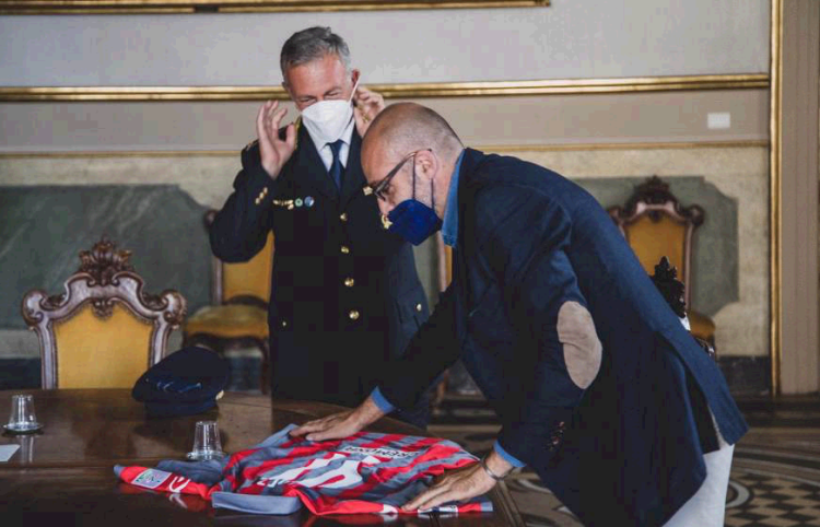 Il saluto del Consiglio comunale al comandante della Polizia locale: in dono una maglia della Cremonese