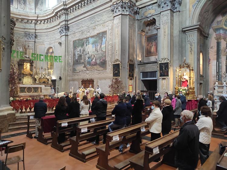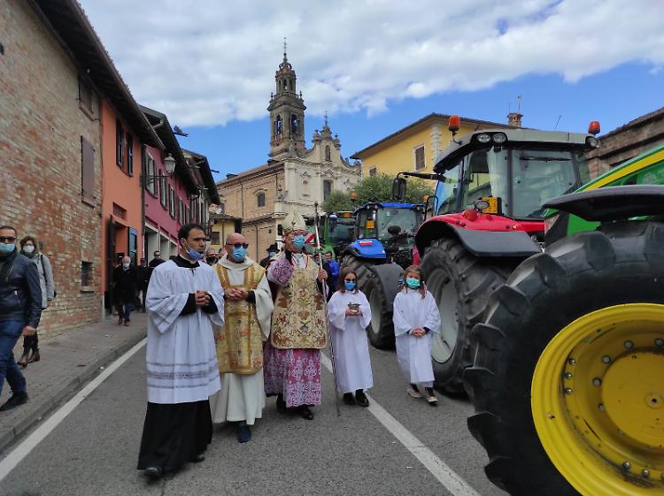 MONTODINE - La Chiesa cremasca alla sua prima Festa del Ringraziamento. Agricoltori e allevatori del territorio si sono riuniti questa mattina, intorno al vescovo di Crema Daniele Gianotti, nella parrocchiale di Santa Maria Maddalena, a Montodine. Un modo per ricordare la tradizione della fine del lavoro dei campi in inverno e l’abitudine di fare San Martino, il trasloco dei braccianti dalle cascine in cui stavano prestando servizio, ad altre. Allo stesso tempo, si ringrazia per i frutti della terra e del lavoro. Monsignor Gianotti ha scelto Montodine per l’edizione inaugurale della Festa del Ringraziamento diocesana. Un appuntamento promosso dalla commissione per la Pastorale sociale e del lavoro. Hanno presenziato alla messa il prefetto di Cremona Vito Danilo Gagliardi, il presidente provinciale Mirko Signoroni, il presidente della Libera agricoltori e di Confagricoltura Lombardia Riccardo Crotti e il commissario della Camera di Commercio e presidente di Rei-Reindustria e Innovazione Gian Domenico Auricchio.