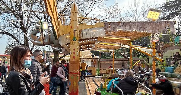 CREMA - Il luna park per i più piccoli, ma anche per i grandi che hanno voglia di tornare bambini. Il sapore e il profumo delle frittelle o delle crepes, la passeggiata lungo il viale, curiosando tra le bancarelle, o nel parco del Novelletto, per godersi il sole di primavera. E ancora la messa in Basilica, il giro in oratorio per la pesca benefica o per portare i figli a provare l’ebbrezza di cavalcare nel campo da calcio o di cimentarsi nella pesca alla trota, organizzata nel piccolo specchio d’acqua artificiale realizzato davanti al bar. Senza dimenticare i prodotti tipici: dal vino, sino alle erbe aromatiche e ai fiori, acquistabili allo stand dell’istituto agrario Stanga, approfittando anche della possibilità di visitare le serre e il giardino già fiorito, curati dagli studenti. Questo e molto altro è la fiera di Santa Maria, un ritorno ad una tradizione tanto amata dai cremaschi che ieri ha registrato il pienone. Dopo due anni di stop forzato per la pandemia, una bella domenica di inizio primavera ha garantito il successo della kermesse. «Una gioia per tutti – spiegano Serafino Doldi, Giorgio Massari, Tiziana Mora e Eleonora Mutti –: proponiamo la pesca benefica in oratorio, che ci permette di raccogliere fondi da destinare alle attività della struttura parrocchiale. Ci voleva dopo due anni di buio. Torniamo ad incontrarci all’ombra della basilica, rivediamo gli amici, ci divertiamo insieme a figli e nipoti».