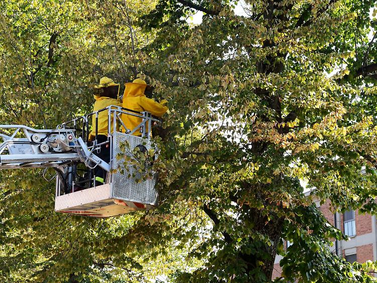 La squadra è arrivata sul posto con un’autoscala, ma dopo una prima ricognizione i pompieri del comando di Cremona si sono subito resi conto che le dimensioni del nido rendevano necessario l’intervento di un esperto. L’alveare, infatti, era lì da molto tempo, sospeso al ramo di un albero a circa quattro mesi di altezza e le api avevano già fatto i favi.