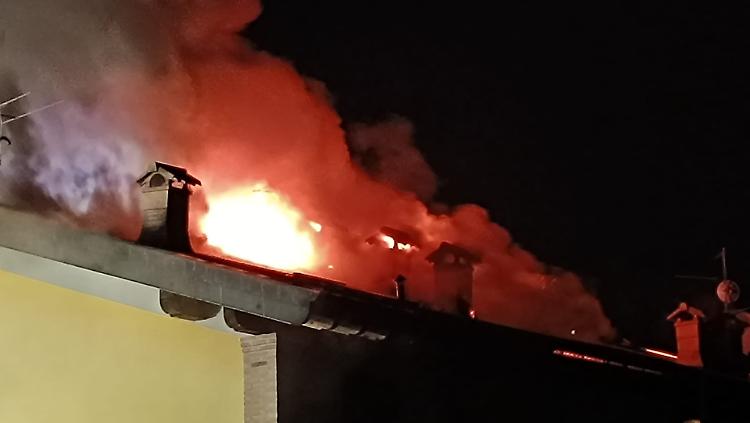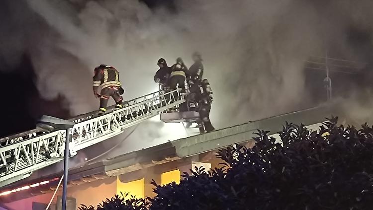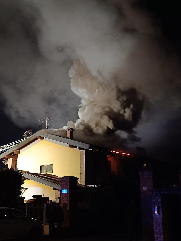 In pochi minuti raggiungono la zona i vigili del fuoco con quattro equipaggi che salgono in fretta e furia sul tetto iniziando le operazioni di spegnimento del rogo proprio per evitare che si propaghi anche alla copertura delle altre case.