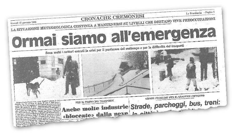 CREMONA - «L’inverno fu duro e freddo e in alcune terre della Liguria e della Lombardia la neve raggiunse i 9 piedi e durò fino al mese di maggio»: nove piedi, con le antiche misure, significa quattro metri. Così raccontava la grande nevicata del 1570 Ludovico Cavitelli, quando gli storici del XVI secolo annotavano il maltempo e le piene del Po. La nevicata del gennaio 1985 ha l’onore di essere iscritta nella storia: non si arriva ai quattro metri, ma quel metro e poco più di quei giorni sono ‘degni’ di essere ricordati fra ‘li eventi mirabili’. E in chi li ha vissuti provoca l’immancabile (e un po’ nostalgico): io c’ero.