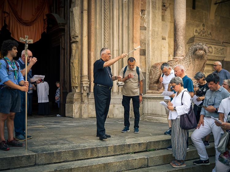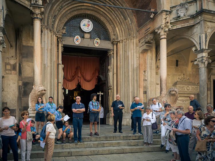 CREMONA - Movimenti e associazioni ecclesiali (Azione cattolica, Comunione e liberazione, Neocatecumenali, Scout Agesci, Unitalsi) hanno vissuto stamattina il loro Giubileo diocesano con un pellegrinaggio a piedi partito dalla Casa della Speranza di Borgo Loreto, guidato dal vicario zonale don Pietro Samarini, che ha fatto tappa nella chiesa di San Bernardo e poi nel Centro pastorale di Via Sant’Antonio del fuoco, per raggiungere poi la cattedrale dove il vescovo Antonio Napolioni ha celebrato la messa della solennità della Santissima Trinità.