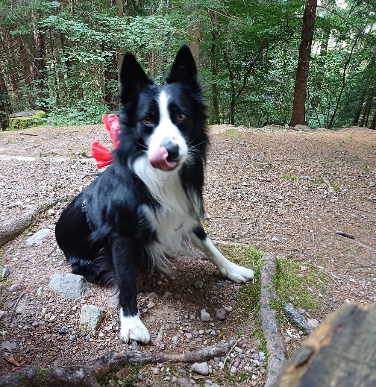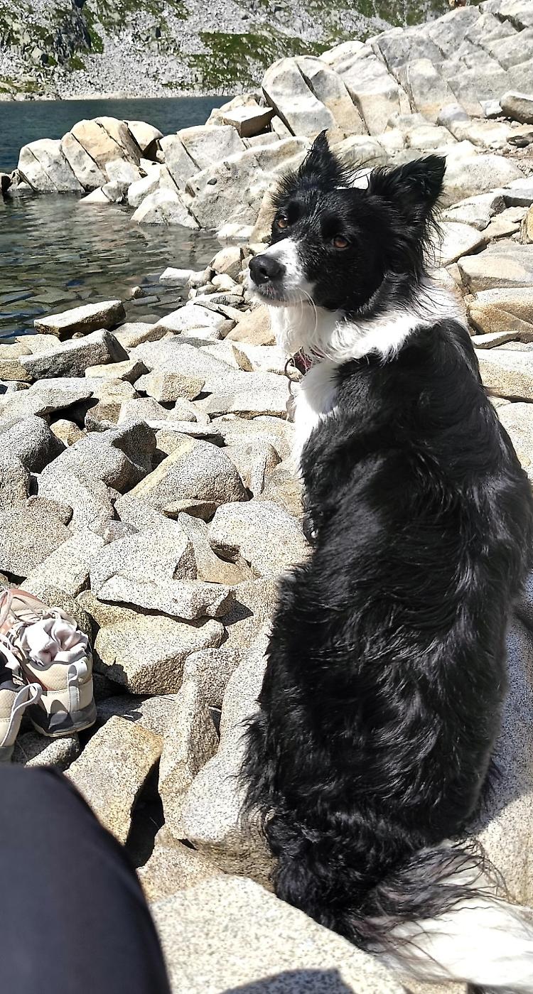 Easy, border collie di 13 anni, che in vacanza in montagna nella zona di Sesto (Alto Adige) ha trovato un po’ di fresco