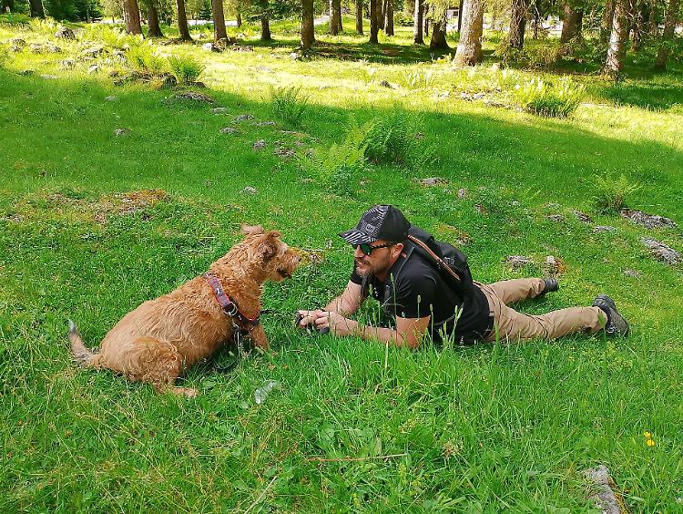 Susanna Rampini con il suo cane Paco a Rumo in Val di Non
