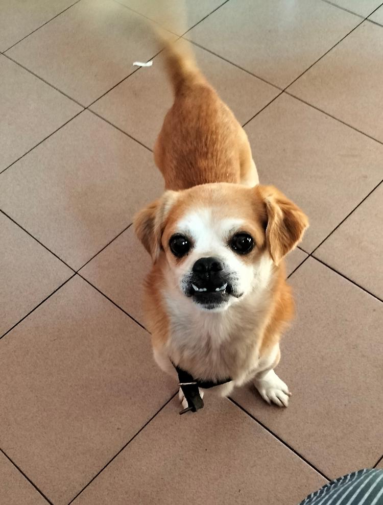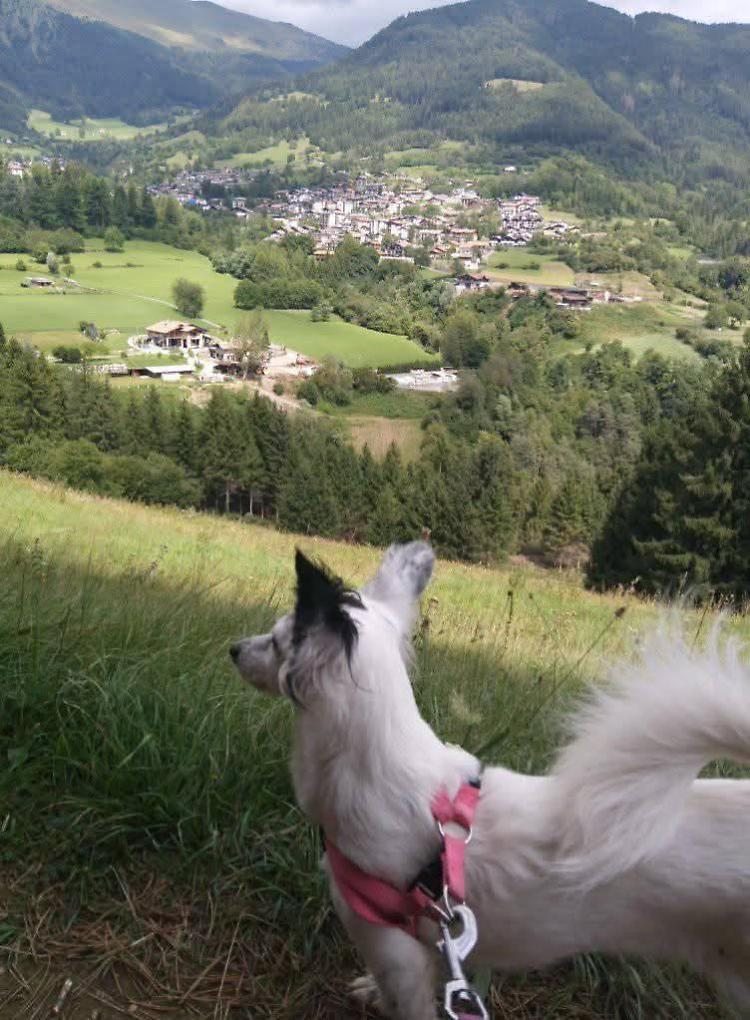 Milù dopo una lunga camminata tra i boschi di Pinzolo
