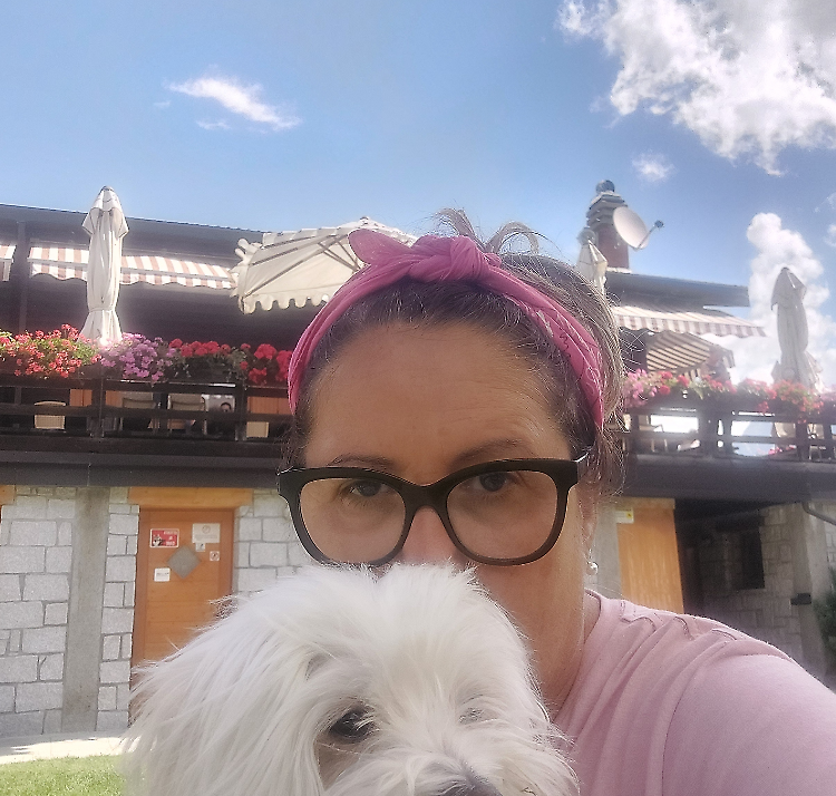 Daniela Renzi con la sua cagnolina a Ponte di Legno