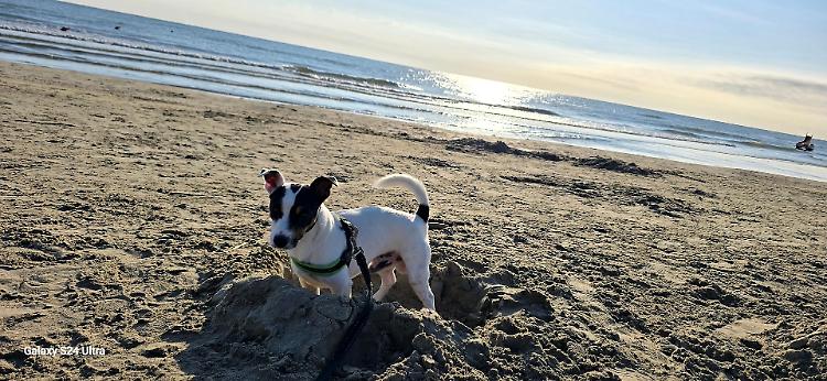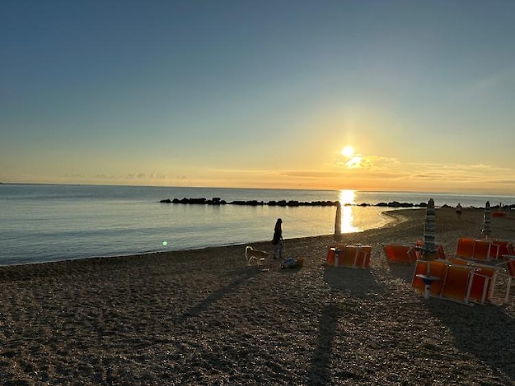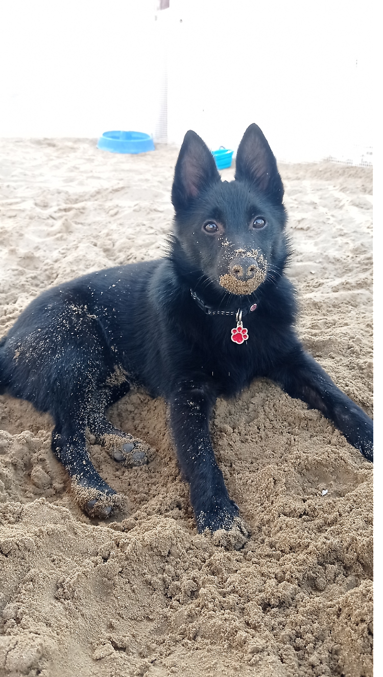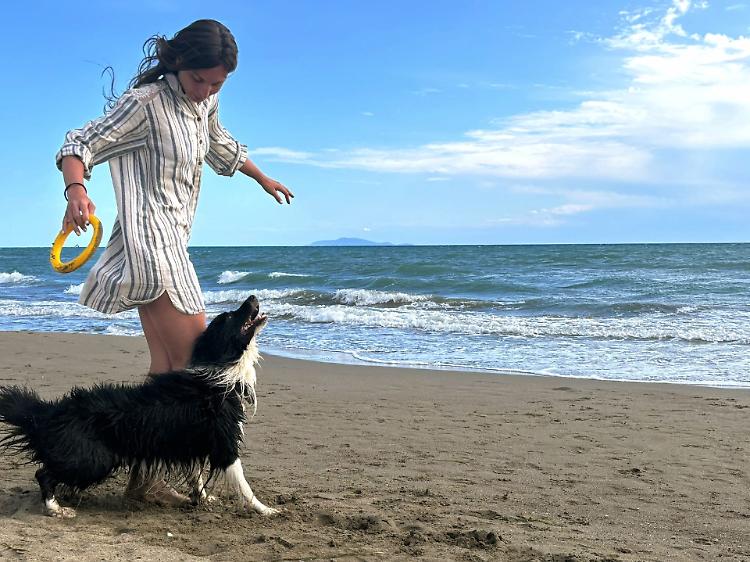 Jazzy che adora la sabbia sulla spiaggia di Grottammare