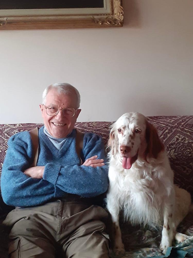 Nonno Gigi con Sophie in attesa di leggere il giornale