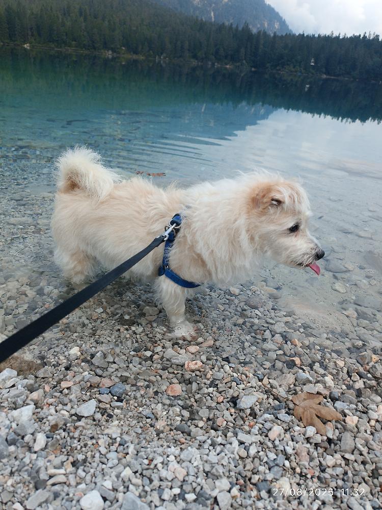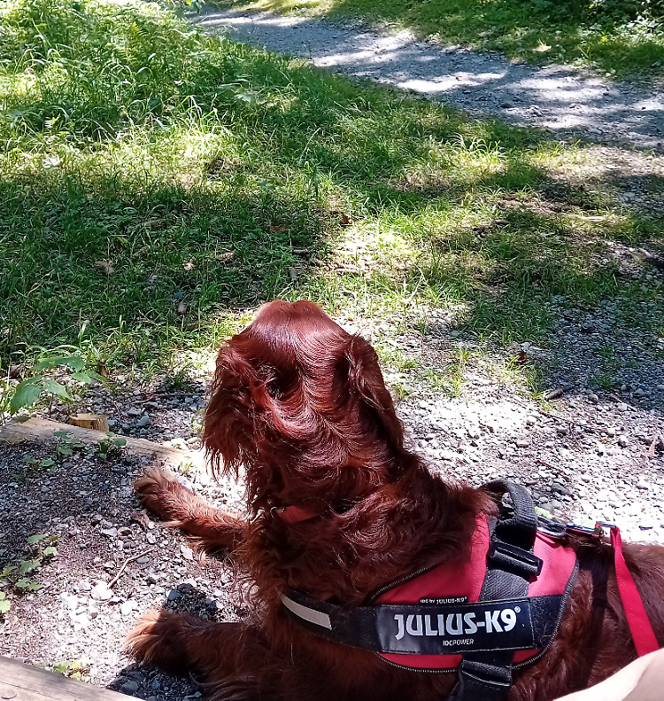 Milù dopo una lunga camminata tra i boschi di Pinzolo