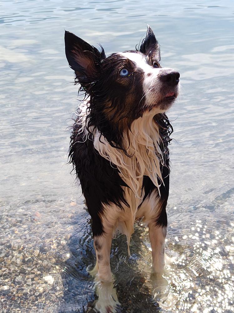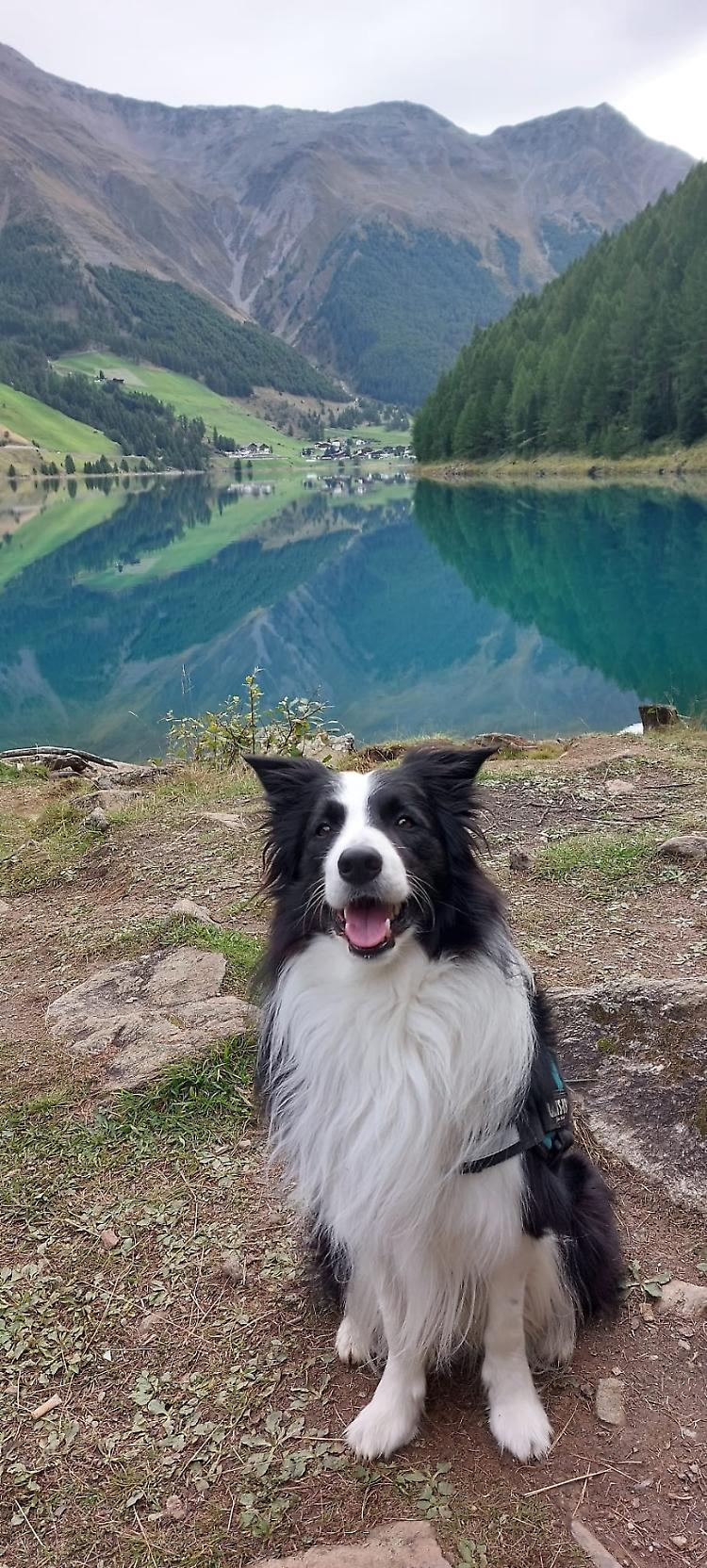 Easy, border collie di 13 anni, che in vacanza in montagna nella zona di Sesto (Alto Adige) ha trovato un po’ di fresco