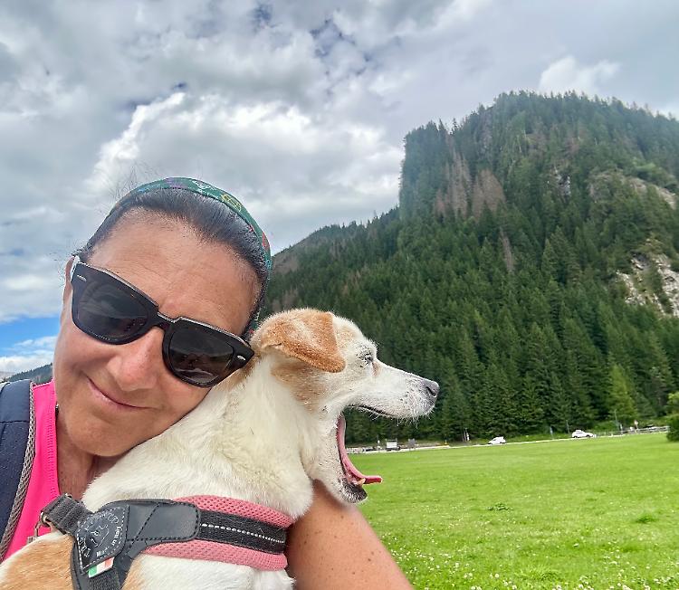 Susanna Rampini con il suo cane Paco a Rumo in Val di Non