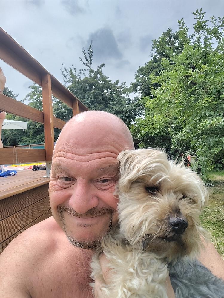 Giorgio e Rusty in pieno relax in piscina