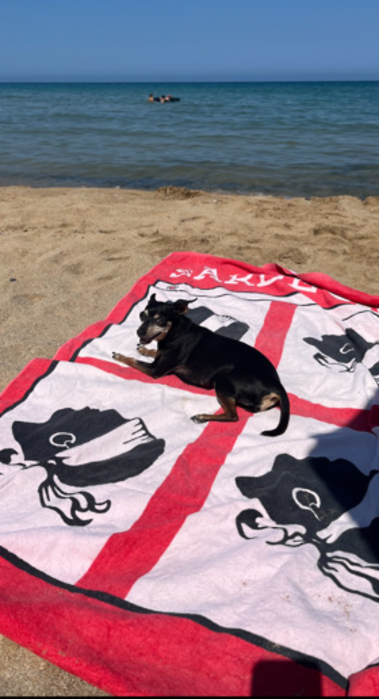 La cagnolina Nina in vacanza in Calabria ha cuore grigiorosso: foto inviata da Giuseppe Mediani