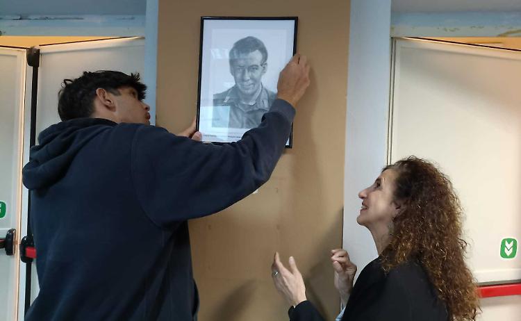 A ricordare il sorriso aperto di Stefano Villa, il ritratto realizzato da Andrea Gerevini come omaggio all’ex studente caduto mentre lavorava, come sempre, per proteggere gli altri.