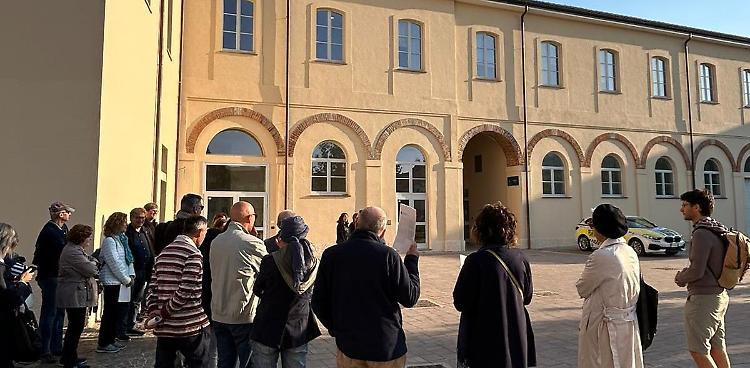 Si parte dal chiostro grande, parte dell’edificio quattrocentesco che ospitò, a partire dal 1494, le monache agostiniane. Nel chiostro accanto Cibolini fa notare i materiali di riporto utilizzati dagli austriaci quando, soppressi gli ordini religiosi, trasformarono i monasteri in caserme. Cibolini offre una cavalcata lungo i secoli che sfiora l’epoca risorgimentale, con l’episodio rivoluzionario di Cecco Pieri, fino ad arrivare alla Resistenza dei militari della caserma contro i tedeschi, l’8 settembre 1943.