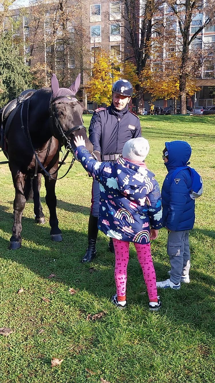 La pattuglia a cavallo viene dalla Questura di Milano ed è specializzata nel controllo delle aree verdi e nei servizi di rappresentanza. Gli agenti selezionati con un concorso interno alla Polizia, che fra i criteri di selezione prevede anche la familiarità con gli animali. I vincitori vengono formati poi nel centro di addestramento di Ladispoli.