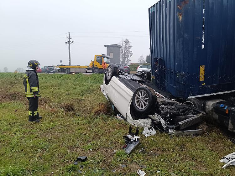 RICENGO - Melotta chiusa da due ore a causa dell'incidente stradale che ha coinvolto una Lancia Y, un'Audi e un Tir, nel tratto rettilineo tra le rotatorie della bretella della 591 e della provinciale che porta in paese.
