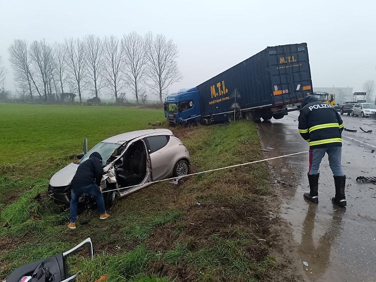 Sul posto due ambulanze e l'automedica, oltre ai vigili del fuoco e alla polizia stradale di Crema, che si occupa dei rilievi. La dinamica è al vaglio, ma pare che la carambola sia stata causata da un salto di corsia. La Y proveniva da Pianengo, Audi e camion viaggiavano nella direzione opposta. Ad avere la peggio è stata la coppia di anziani a bordo della Lancia. L'auto è finita nel campo a fianco della carreggiata.