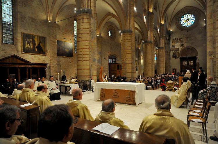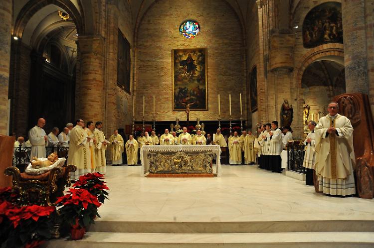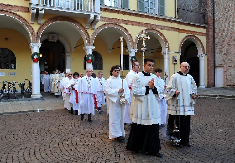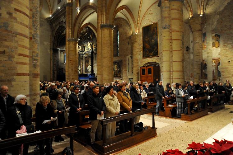 Oggi, le messe vespertine sono state sospese in città. Così che la celebrazione pomeridiana fosse condivisa dal maggior numero di fedeli. Sono stati ben 35 i sacerdoti sull’altare con monsignor Gianotti. Con loro, tre diaconi: Antonino Andronico, Claudio Dagheti e Alessandro Benzi.