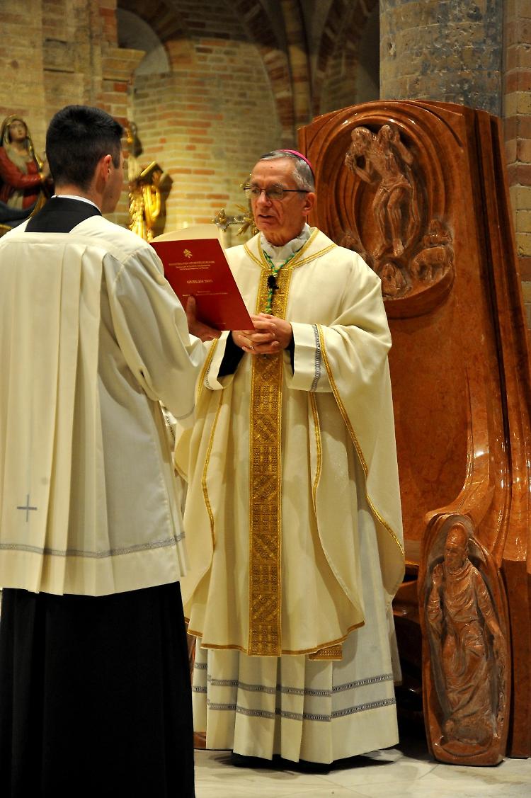 Il cerimoniere è stato don Angelo Lameri. Sull’altare, a lato del vescovo, don Emilio Luppo e il vicario don Attilio Premoli. La Polifonica Cavalli diretta da Riccardo Dolci e con Pietro Miragoli all’organo ha guidato i canti, sin dalla breve processione tra la piazza e l’altare stesso.