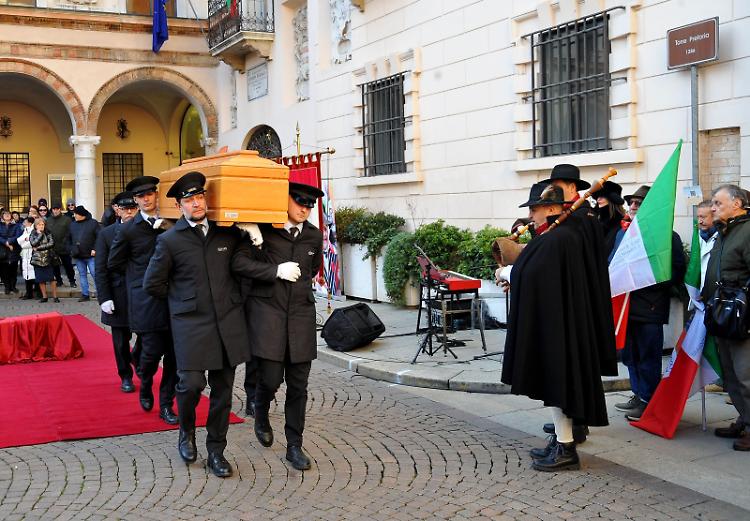 Il feretro, accompagnato dal suono delle cornamuse, è stato portato dal primo piano del Municipio in piazza Duomo, sotto il balcone comunale del sindaco, con il gonfalone alle spalle. Renato Stanghellini è stato ricordato come un esempio di infinita bontà, «un personaggio che ha speso tutta la sua vita per gli altri, donando tutto il suo cuore verso tanta generosità e solidarietà».