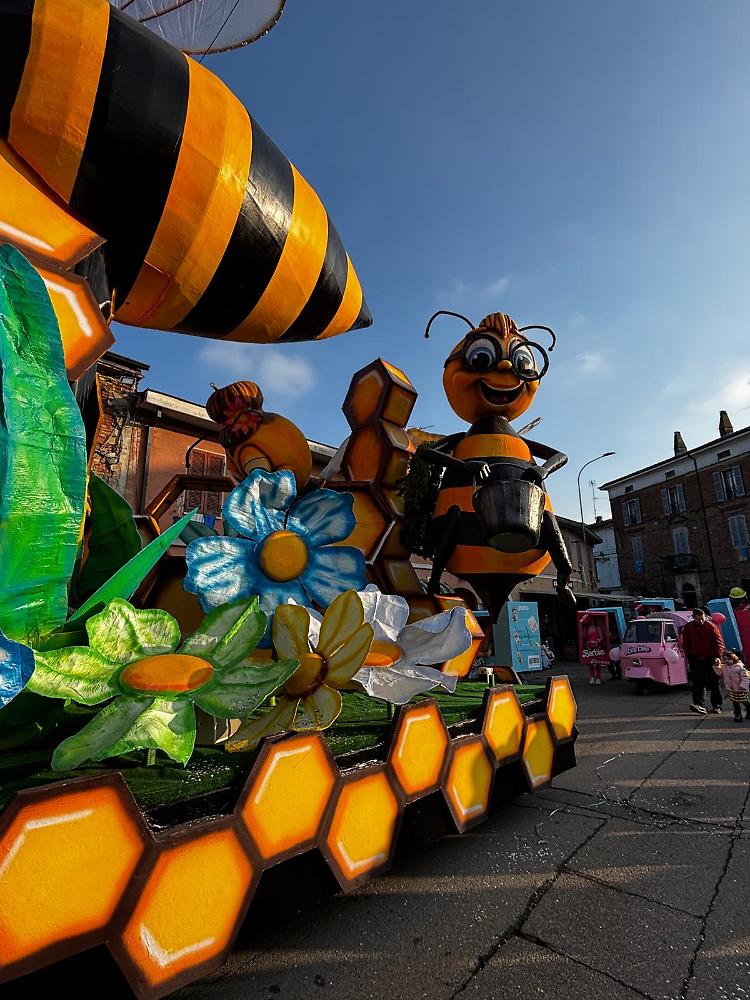 PESCAROLO - Un tripudio di colori, maschere, coriandoli, musica e tanta allegria. È iniziata al meglio l’edizione numero sessanta del Carnevale di Pescarolo che oggi, sotto un imprevisto, ma caldo sole, ha aperto il programma delle sfilate con il primo dei cinque appuntamenti in piazza Garibaldi. Puntuale alle 14.30 il trenino Pentolino, guidato dal presidente Pro loco Claudio Dondi, ha fatto il giro della piazza annunciando l’imminente arrivo dei protagonisti della giornata, i cinque carri allegorici; poi la consegna delle chiavi a Re Carnevale da parte del vice sindaco Marta Fiammetti e l’inizio vero e proprio della festa.