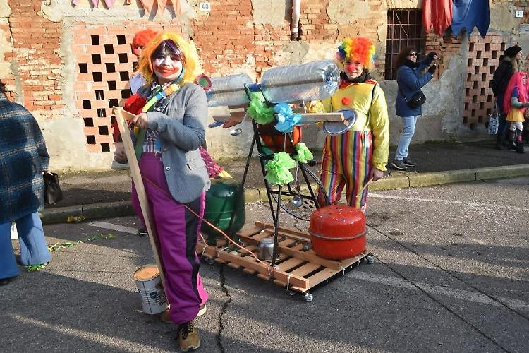 Una banda un po’ ‘sgangherata’ di clown musicisti che si sono divertiti a suonare i propri strumenti e hanno portato tanta allegria e un ritmo decisamente contagioso. «Il nostro gruppo di musicisti ha sempre tante idee che frullano in testa e tra queste, tempo fa – prosegue Bianchi – è nata quella di costruire strumenti con materiale di recupero e riciclo; così per qualche mese la nostra sede si è trasformata in un laboratorio vero e proprio e durante i week end ci siamo trovati a costruire gli strumenti più strani». Come ad esempio una batteria con i coperchi delle pentole, i boccettoni di plastica dell’acqua e i pezzi di una vecchia caldaia. «Oppure il ciabattofono, come lo abbiamo chiamato, uno xilofono costruito con i tubi su un bancale di legno e suonato con le ciabatte. Una volta terminati gli strumenti, abbiamo iniziato le prove con questo nuovo organico creato apposta per l’occasione». E domenica il debutto nella prima giornata di sfilata. «Tra quei bellissimi ed imponenti carri anche la nostra musica, con un repertorio che ha permesso di usare i nostri improbabili strumenti con quelli veri. Il risultato è stato molto bello e particolarmente apprezzato. E soprattutto noi ci siamo divertiti molto a sfilare, ma soprattutto a costruire questi originari strumenti».