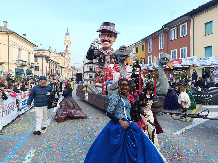 CREMA - Non ha tradito le attese la prima del Carnevale cremasco. La 38ª edizione si è aperta sul circuito di porta Ombriano con i cinque grandi carri in concorso, numerosi gruppi folcloristici e ospiti arrivati da varie parti della regione. Sul palco, per aprire la sfilata inaugurale il presidente del comitato organizzatore Eugenio Pisati, che ha speso parole di commosso ricordo per Renato Stanghellini, il patron dei Pantelù e una delle anime del carnevale cremasco, scomparso il mese scorso a 77 anni. Con Pisati i rappresentanti istituzionali. Per il Comune l’assessore Giorgio Cardile. Poi i due ospiti di Radio 105, Pizza, ovvero Graziano de Santis, e Ylenia Baccaro. Sul palco di piazza Papa Giovanni XXIII i tre ‘storici’ presentatori Davide Pisati e Michela Fasoli, affiancati da Gianluca Savoldi. Il pomeriggio ha permesso al pubblico di conoscere e iniziare a votare con i QR code i cinque grandi carri in concorso.