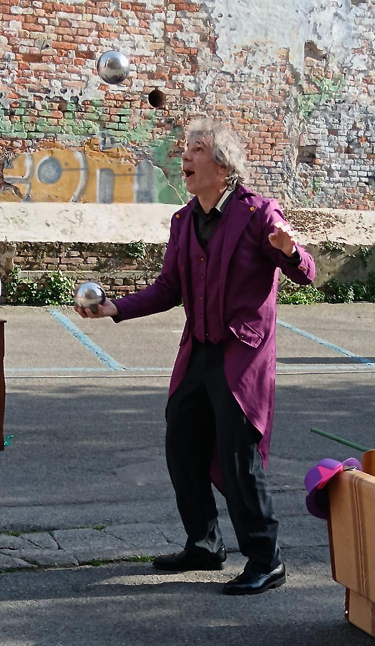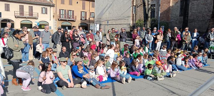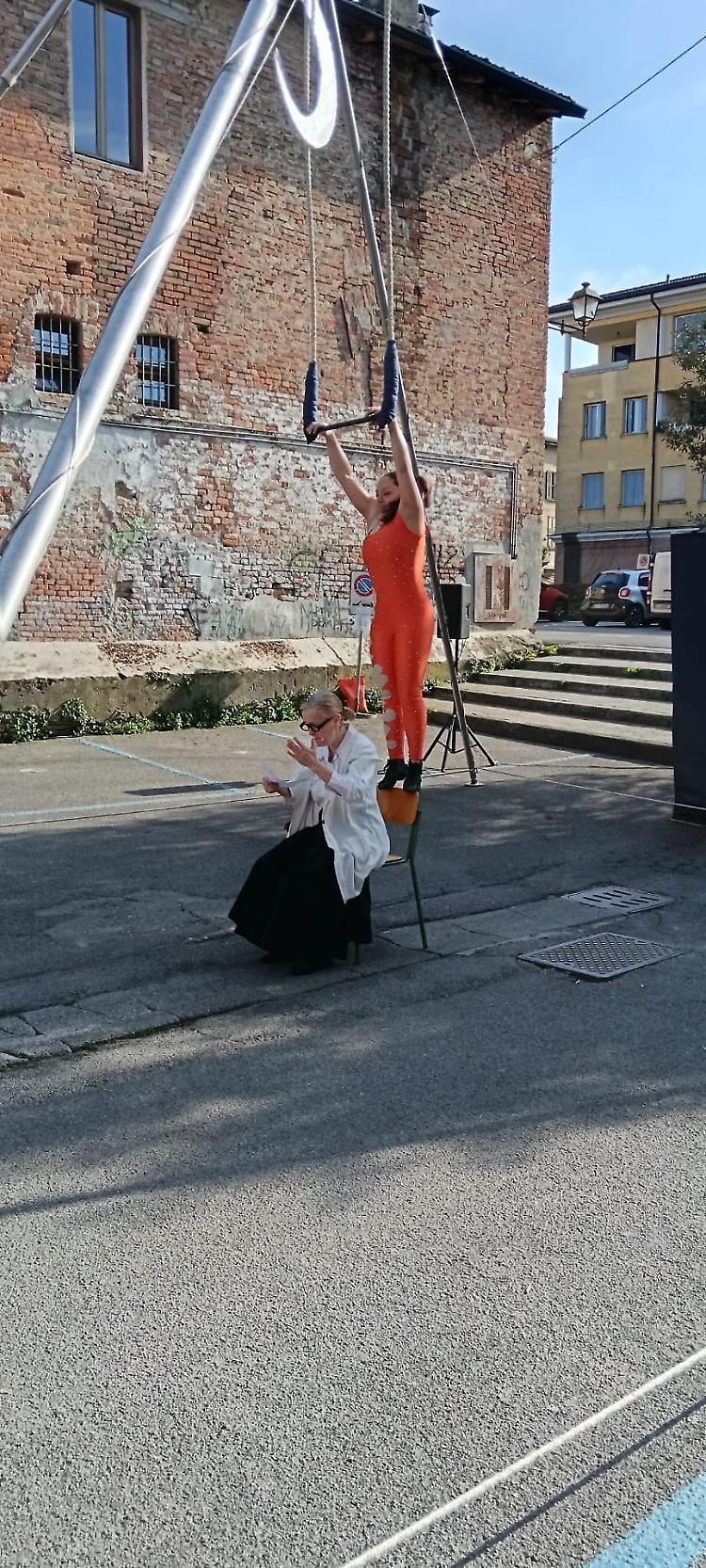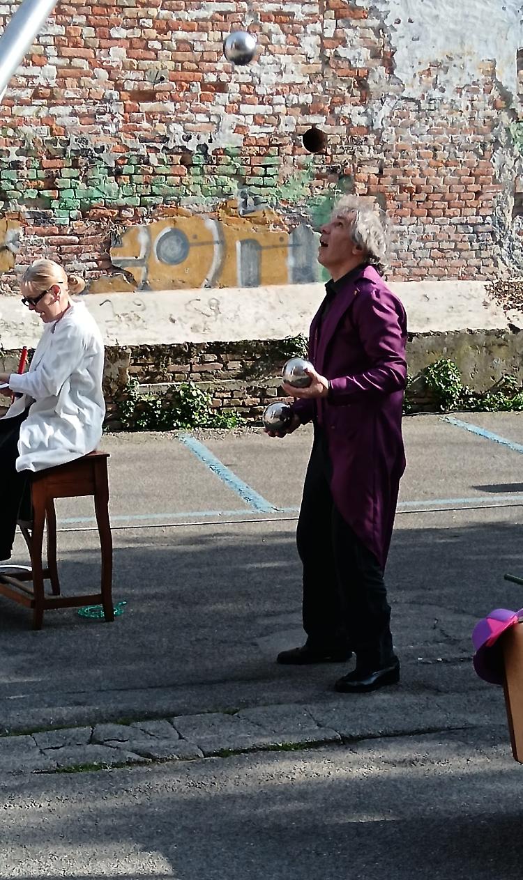 In largo Falcone e Borsellino, sotto un bel sole primaverile, si è tenuto lo spettacolo ‘Circo Rodari’ dello Spazio circo Bergamo, destinato ai bambini dai tre anni.