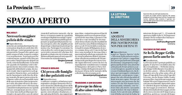 La Provincia del 5 gennaio pubblica a pagina 31 una foto con didascalia che dice testualmente: «Nel fermo immagine Beppe Grillo durante il suo discorso di fine anno».