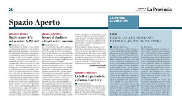 sta arrivando il 25 Aprile e come nel film “La mummia” del 1932 ecco riemergere dalla melma della palude e rianimarsi il lettore Luciano Pedrini in vena di nuove nostalgiche amenità di quando volontario nella Rsi indossava: camicia nera, fez con fiocchetto scacciamosche e una ridicola divisa tutto impettito, orgoglioso di far parte di un esercito con le pezze.... dietro e nei gambali. Non è la prima volta che in modo logorroico si esalta nel descrivere tutto quell’ammasso di organismi militari criminali del ventennio, attribuendo loro valori spirituali che non hanno mai avuto nell’animo quali fedeltà alla Patria, venduta al teutonico invasore; coraggio, confidando nella protezione a pagamento di un esercito straniero e sopratutto onore. Tutti valori traditi dal fascismo ma di cui ancora oggi i nostalgici si riempiono la bocca. Quale onore, ad esempio, ci può essere nella Xa MAS - citata da Pedrini - in questa compagnia di mercenari che dopo aver combattuto per soldi a fianco dei nazisti contro gli italiani si è offerta sempre per soldi agli Alleati di difendere i porti dell’Alta Italia affinché i tedeschi nella loro ritirata non li facessero saltare in aria. Quale onore ci può essere in un esercito che nell’illusione di un impero ha massacrato e sottomesso intere popolazioni lontane e infine quale onore e fedeltà alla Patria ci può essere nelle milizie fasciste complici di sterminio e deportazioni di italiani.