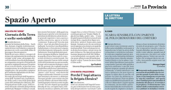 scrivo ai cari amici dell’Anpi di Cremona, per evidenziare loro la triste parabola del presidente nazionale Carlo Smuraglia. Questo noto personaggio del panorama italiano sta impostando una politica dallo strano sapore antisemita. Nel modo più triste che possa esistere, attaccando la comunità ebraica e la memoria della famosa Brigata Ebraica. A Roma, patria della prima resistenza, Smuraglia ha invitato una rappresentanza palestinese, che sfilerà nel corteo. A prescindere dal fatto che non si capisce cosa c’entrino i palestinesi con la resistenza di Porta San Paolo, trovo questo invito, e i ripetuti accenni che lo stesso fa in molti documenti ufficiali dell’Anpi nazionale, del tutto fuori luogo. Si esalta la triste vicenda storica dei palestinesi per accusare ebrei, israeliani e non solo, di essere dei nuovi tiranni. Peccato che si dovrebbe sfilare per ricordare il passato e non per polemizzare sul presente. Rammento infatti che la storia della seconda guerra mondiale è molto diversa e piena di lutti ebraici. In particolare la comunità ebraica italiana ha versato sangue nella resistenza, ha subito deportazioni ed episodi di inaudita ferocia. La Brigata Ebraica si è battuta per la liberazione d’Italia donando le vite dei propri giovani alla nostra nazione. E i palestinesi del 1943? Beh, forse Smuraglia dimentica la grande simpatia che riscuoteva, nel medio oriente e nella terra di Canaan, Hitler, il nazismo e il Duce (e che tutt’ora riscuote). Purtroppo ad oggi l’Anpi nazionale invece di custodire la memoria della Resistenza ha ambizioni maggiori: fare politica. Da qui sorge una domanda: cosa sarà l’Anpi tra dieci anni? Diventerà partito politico? Un’associazione di reduci senza reduci della Resistenza? Cosa rimarrà dell’eroico impegno dei partigiani? Cremona tu che hai ospito il DP Camp ITA 82 ribellati a questo assurdo gioco al massacro voluto dalla dirigenza nazionale.