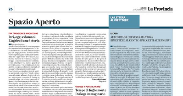 stanti i ‘chiari di luna’ su nuove infrastrutture, ivi compresa l’autostrada regionale Cr-Mn, da decenni nei documenti e strumenti urbanistici di Regione, Province e Comuni, senza alcuna concreta realizzazione, ma con blocco di ogni attività edificatoria aziendale sul tracciato, non resta che affidarci alle intuizioni del prof. Franco Pecchini, indicate nella lettera del 7 giugno a ‘La Provincia’, attente anche al risparmio chilometrico del territorio interessato.