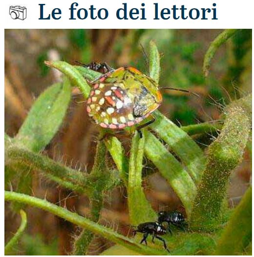 Caro direttore, le invio una foto del mio giardino: una pianta che ospita tutta una famigliola di cimici verdi, credo che siano state importate, sono terribili mangiano e divorano tutto.