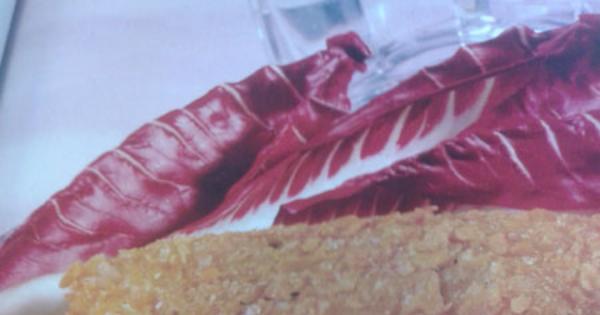 Ingredienti (per 4 persone): 4 cespi di radicchio di Treviso, 150 gr farina gialla bramata, 200 gr grissini, 130 gr farina tipo 00, 70 gr formaggio Bitto, 50 gr Grana Padano grattugiato, 2 uova, 100 ml vino rosso, 100 ml panna, 30 gr burro, 3 cucchiai olio extravergine di oliva, olio di semi per friggere, 1 rametto di rosmarino, sale pepe.